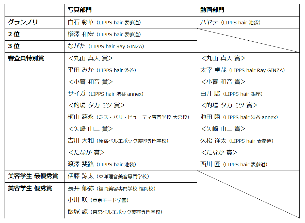 LIPPSは今後も本アワードを通じて、すべての美容専門学生および美容師に対し、メンズヘアの「カッコいい」を追求し技術とマインドを磨く機会を提供することで、美容業界全体の技術向上に貢献するとともに、次世代クリエイターの挑戦を後押ししてまいります。